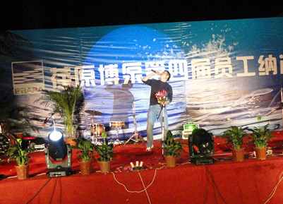18:30分,晚會節(jié)目正式開始,首先在晨曦樂隊激情飛揚的搖滾歌曲聲中拉開了晚會的序幕。晚會節(jié)目有獨唱、小合唱、舞蹈等等,演員們的精彩表演,博得了員工們陣陣掌聲和喝彩。特別是生產(chǎn)部門女職工排練的舞蹈,動感十足,展示了女員工的多姿多彩的精神風貌。常務副總經(jīng)理王正軍的一曲豪邁的《紅旗飄飄》,抒發(fā)了荏原博泵員工的愛國情懷;北京事務所的王信東部長帶來了抒情歌曲《別問》;王虹權、袁磊、趙喜鵬、周新菊、肖旭、竇群、蔣祺、張雷雷、徐道義、董旭光等員工先后表演了自己準備的節(jié)目;職工子女表演的拉丁舞更是把晚會的氣氛推向高潮。