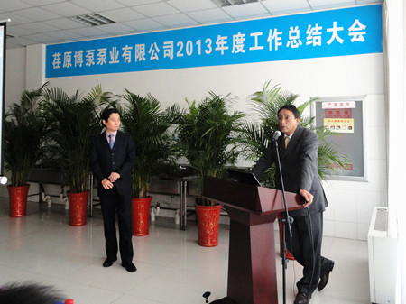 王總在講話中用詳實的數(shù)字,明晰的圖表,做了細致地分析和總結。對2012年之前的工作做了主觀和客觀的原因分析。在2013年的工作總結中,王總用成績和不足來概括:在2013的工作中,營業(yè)工作取得比較突出的成績,取得了訂單創(chuàng)新高;百萬機組項目100%容量訂單的簽訂等亮點,特別可喜的是,在EPC印尼項目中,鍋爐給水泵、循環(huán)水泵、凝結水泵一次性簽單,這在公司歷史上乃至行業(yè)中都是很少見的。在生產(chǎn)方面:發(fā)貨臺數(shù)創(chuàng)公司歷史之最;車間5S管理取得良好進展;產(chǎn)品不合格率得到有效控制。在其他方面:公司采購引入比價采購環(huán)節(jié),降低采購成本;C型泵的改善方面,提高采購批量,降低采購價格,滿足生產(chǎn)各環(huán)節(jié)的需要。不足之處:營業(yè)方面行業(yè)訂單結構不平衡;生產(chǎn)環(huán)節(jié)中生產(chǎn)秩序的保證、外購件的合格率以及設計出圖的時間有待改善;ERP環(huán)節(jié)錄入數(shù)據(jù)的及時性、準確性方面還有待提高等等。